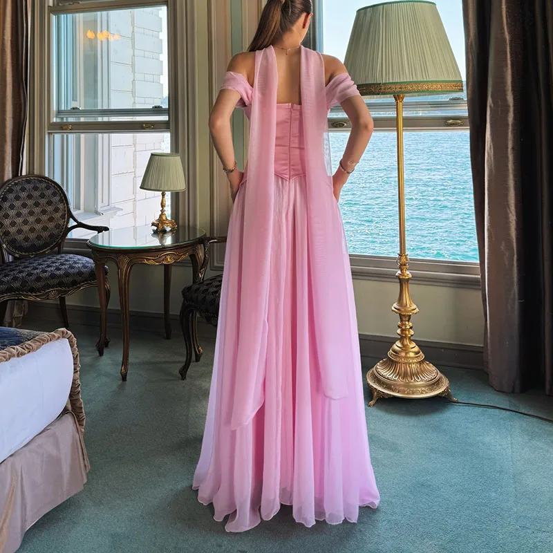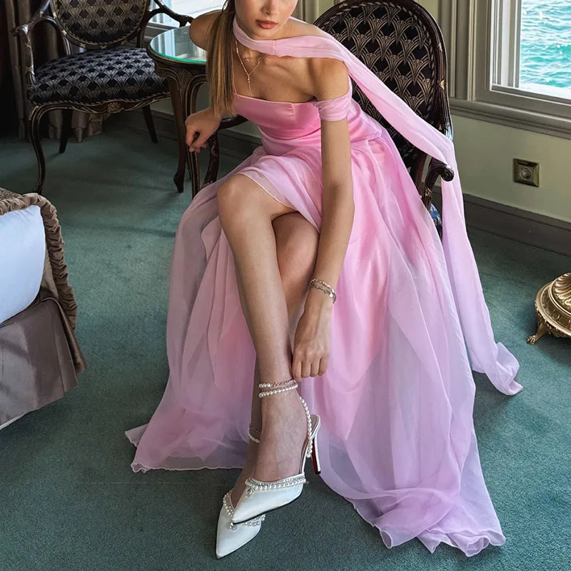 Sexy Backless Ribbon Women's Dress French Style Elegant Satin Spliced Mesh Dress Elegant Tube Top Sleeveless Pleat Evening Dress
