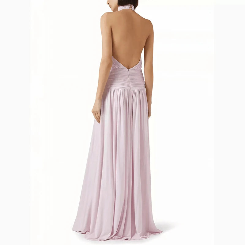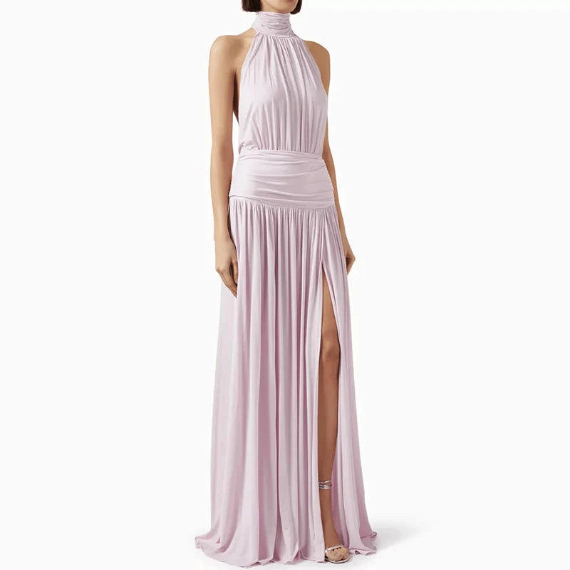 Summer Hollow Out Sleeveless High Waist Party Dress 2025 Fashion Backless Solid Long Dresses Sexy Ladies Halter Slim Split Dress