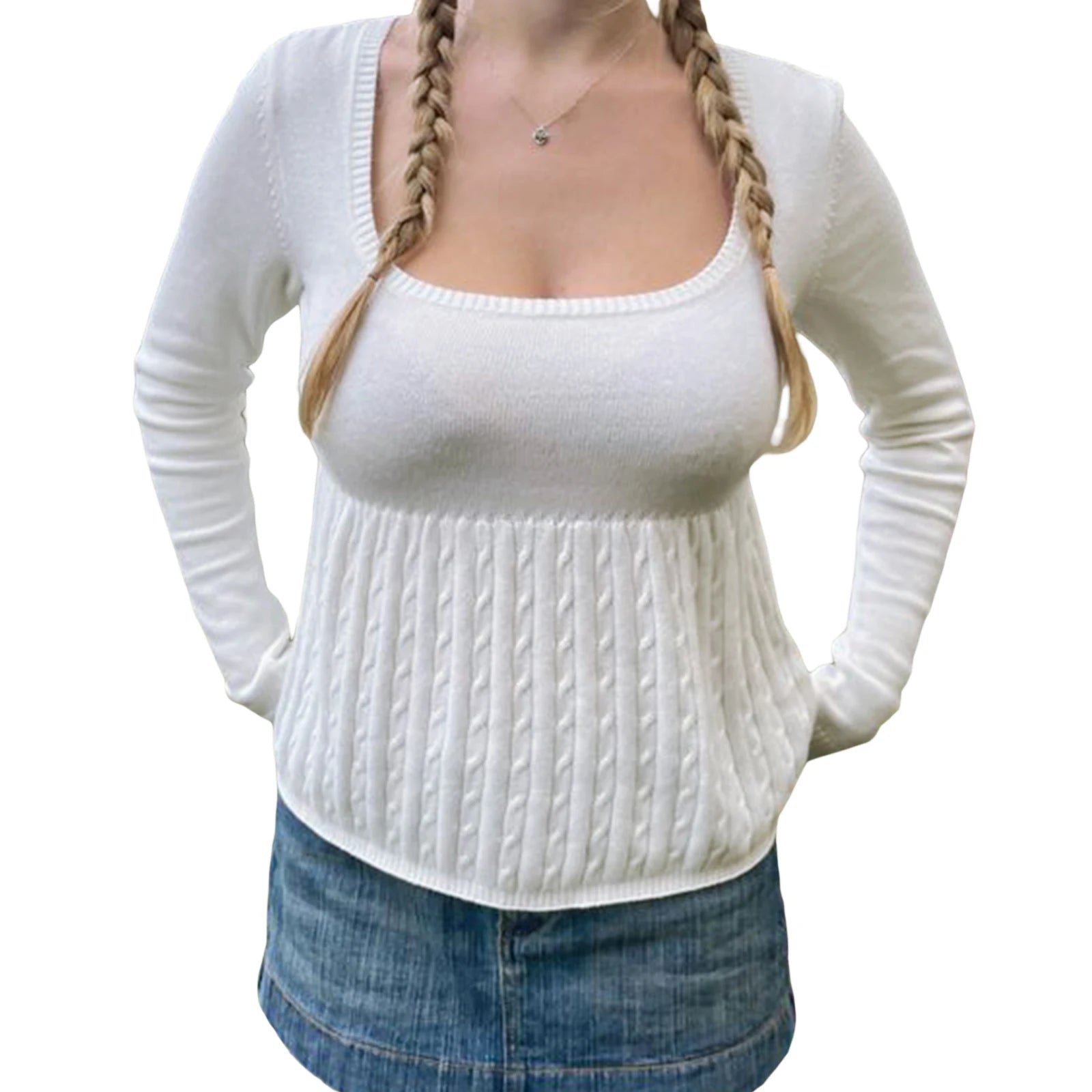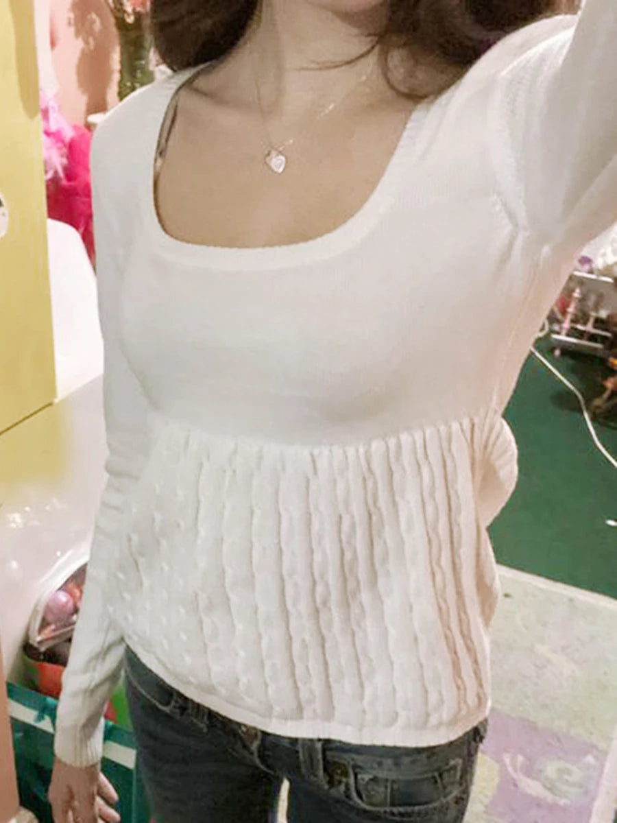 Women's Spring Autumn Knit Tops Solid Color Long Sleeve U Neck Cable Knitwear