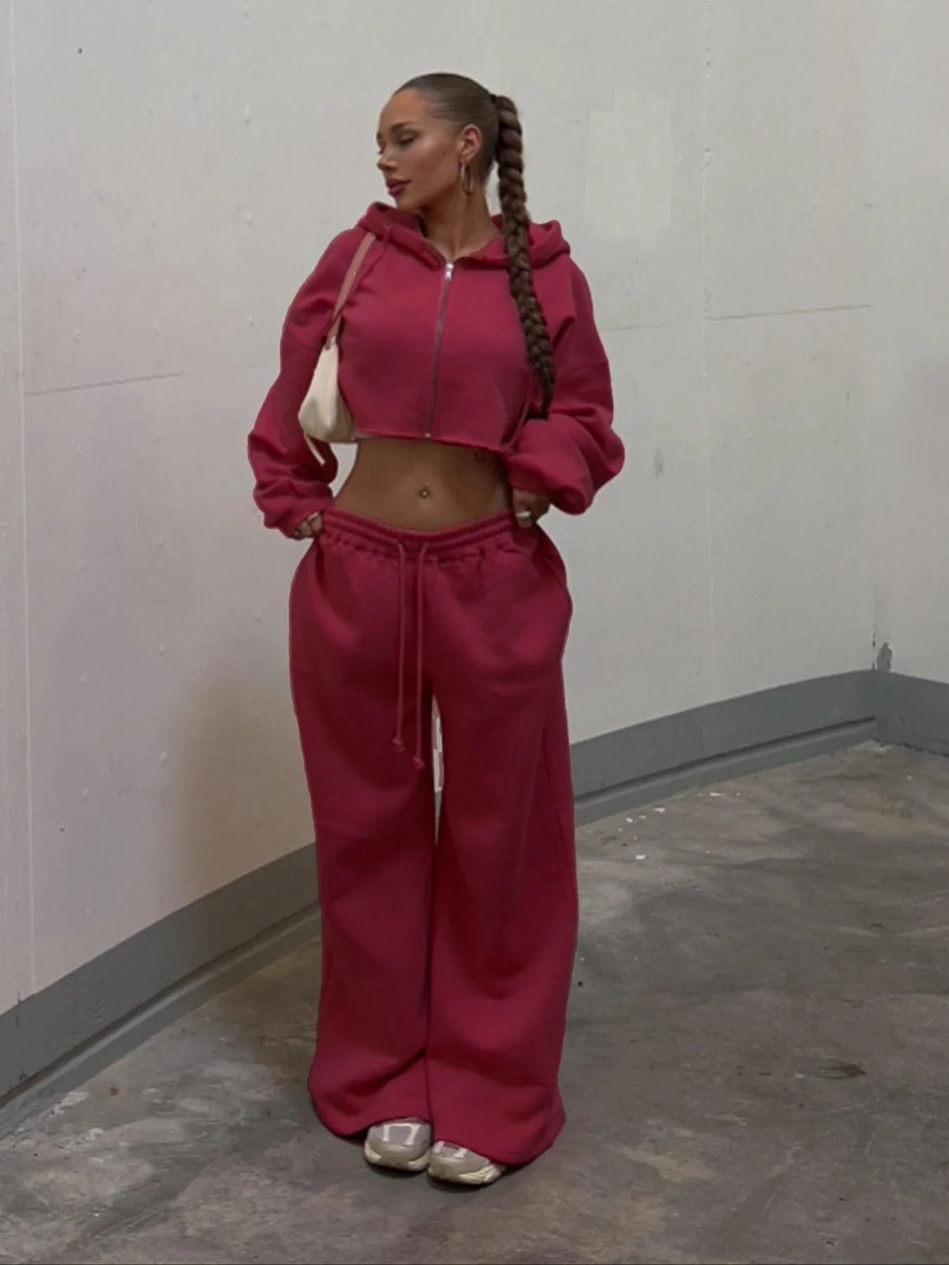 Designed for all-season wear, this two-piece set is perfect for fall and winter, keeping you warm and stylish.
